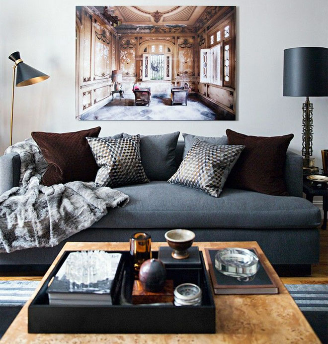 Une fois que vous avez défini votre esthétique préférée, passez aux couleurs. Les intérieurs masculins se caractérisent généralement par des couleurs sombres ou neutres : pensez au noir et blanc, au gris, au bleu foncé ou au beige.