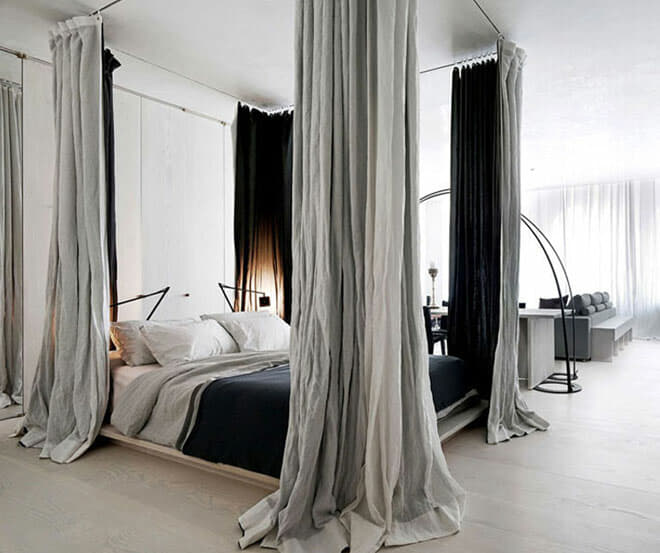 Le bois massif ou le cuir sont d’excellents matériaux de cadre de lit qui conviennent à la plupart des designs d’intérieur masculins. Le lit est l’élément central de la pièce, alors habillez-le du mieux que vous pouvez. Si vous avez opté pour une ambiance industrielle, un cadre de lit en métal fera également l’affaire.