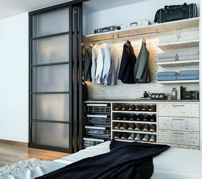 Optimisez le rangement de votre chambre à coucher en vous procurant un lit de rangement à plate-forme ou deux poufs. Si vous n’avez pas assez de place pour une armoire solide, une tringle à vêtements est une alternative élégante. Les armoires et les étagères conviennent également, à condition qu’elles soient assorties au reste de votre esthétique.