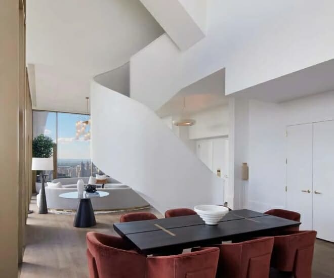 L’appartement a été conçu par le DDG de Joe McMillan et est perché au sommet de la tour du 180 East 88th Street. Parmi les autres architectures imposantes, cette unité particulière serait la plus haute le long de la 72e rue, dans l’Upper East Side de Manhattan. Son emplacement offre des vues incomparables sur Central Park de New York pendant la journée et la nuit, les lumières de la ville ne manqueront pas de laisser un souvenir impérissable.