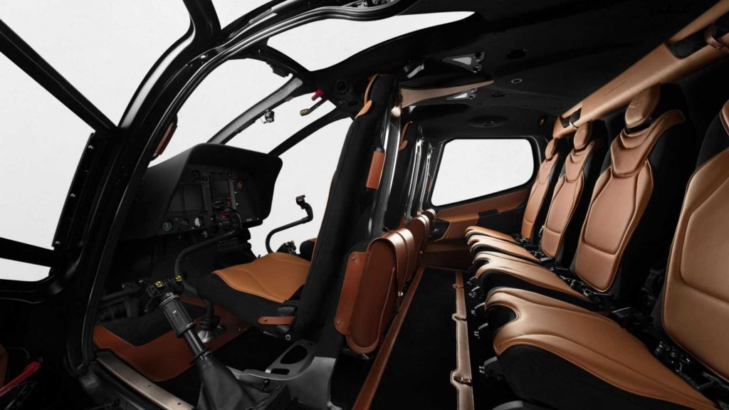 Les autres teintes comprennent le gris xénon, l’Arizona et le noir outremer. A l’intérieur, la cabine est exactement ce que l’on attend d’un hélicoptère Aston Martin.