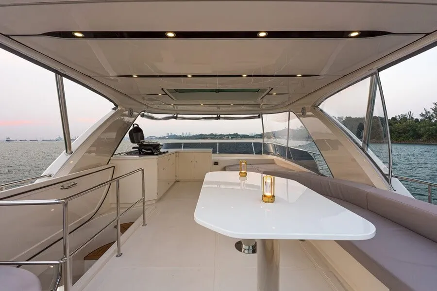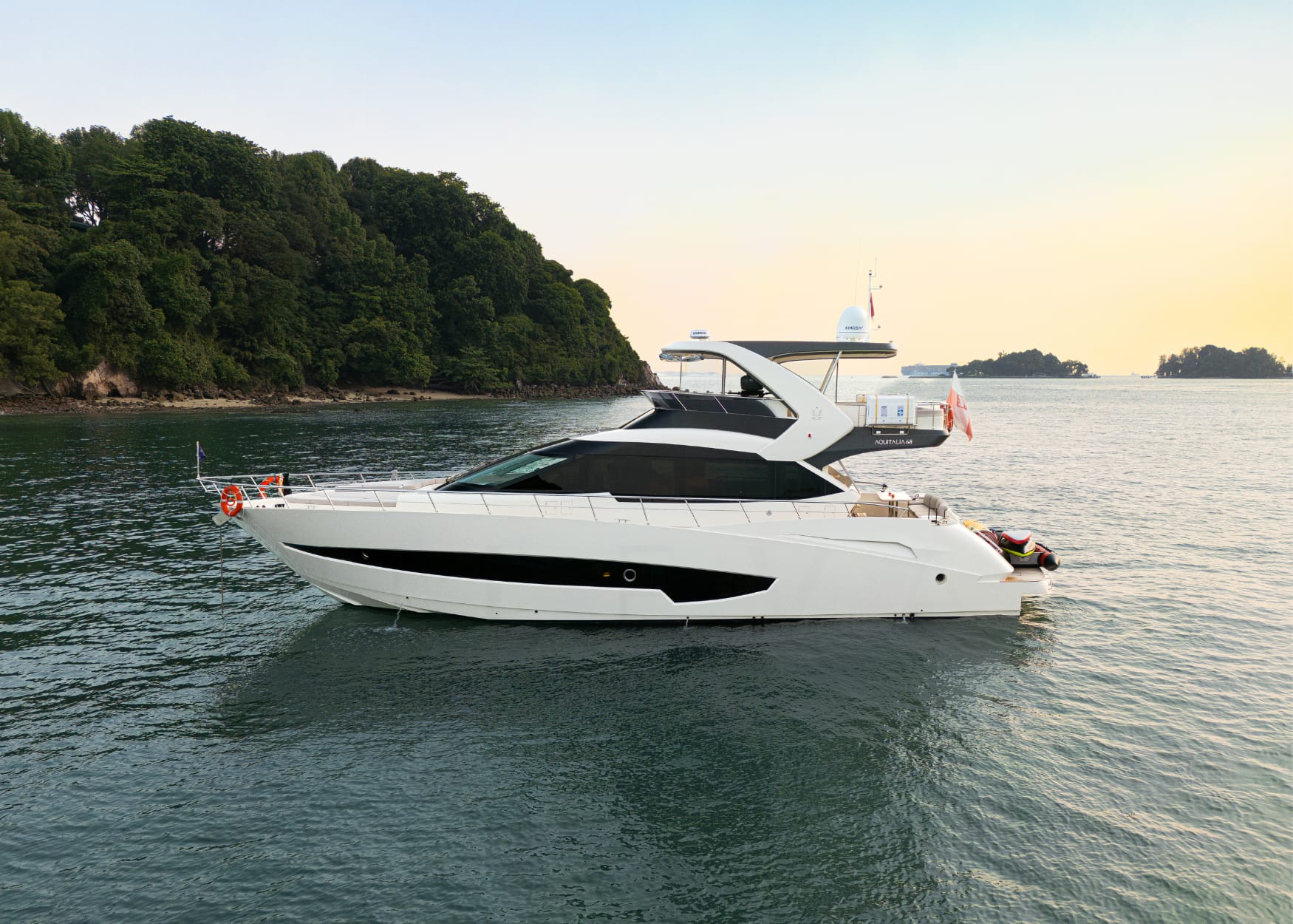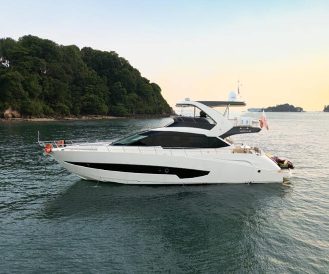 Legend, un Aquitalia 68 FB personnalisé, est disponible à la location à Singapour par Zenith Yacht Charters. Il a été personnalisé et amené en Asie du Sud-Est par le concessionnaire du chantier, Raffles Yacht.