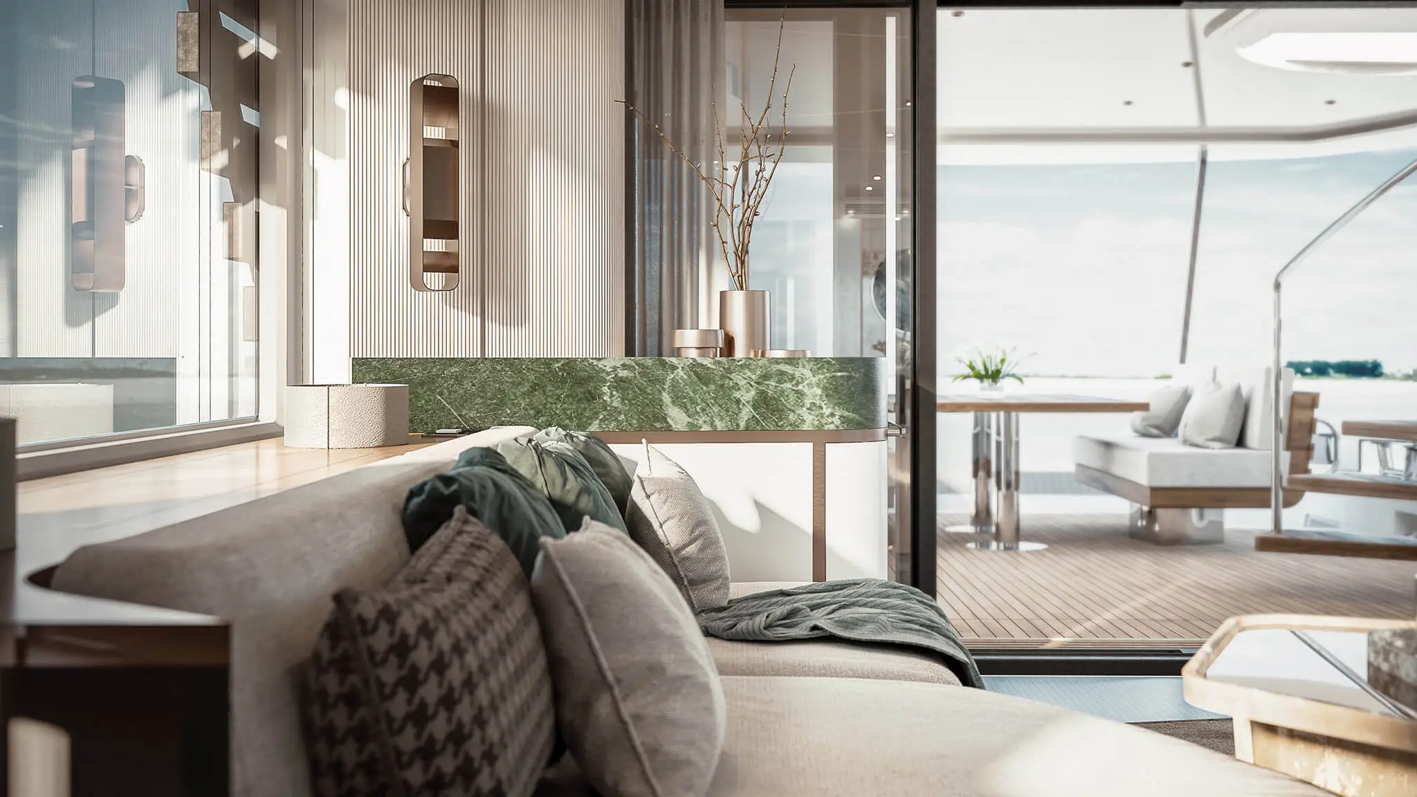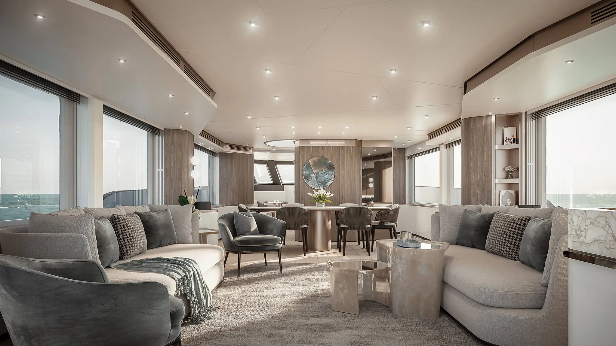 Cette conception permet aux clients de profiter de leur temps à bord sans aucune interruption, ce qui favorise une atmosphère de tranquillité et de relaxation. En outre, un accès latéral depuis le poste d’équipage permet au personnel de se déplacer sans interférer avec les mouvements des clients, ce qui renforce encore le sentiment d’intimité.