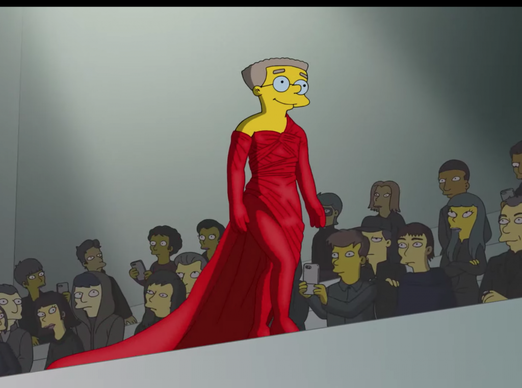 Marge Simpson a clôturé le spectacle animé dans une robe à volants dorés également issue du spectacle printemps-été 2020 de Balenciaga.