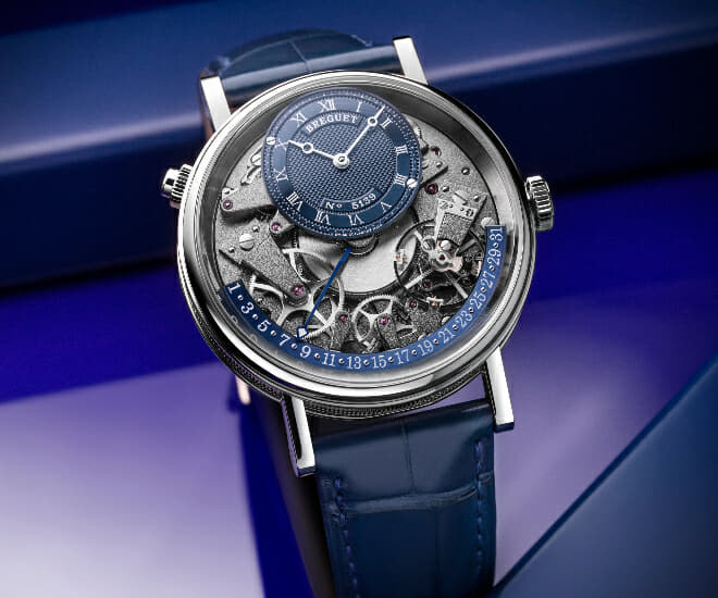 En 2005, la marque contemporaine Breguet s’est inspirée de la montre à souscription d’Abraham-Louis pour lancer la collection Tradition. Cette collection présente une horlogerie classique, exécutée avec l’esthétique du mouvement de la montre à souscription. Et pour faire avancer le concept, ces montres sont conçues pour présenter leur mouvement du côté du cadran. Les ponts et les platines en anthracite grainé forment un contraste saisissant pour un garde-temps fonctionnellement classique qui a tout sauf l’air classique.
