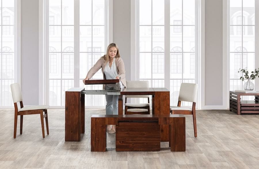 Actuellement, Transformer Table offre également une table basse gratuite pour chaque achat de sa table à manger, qui sert de pièce de rangement unique pour les panneaux de la table lorsqu’ils ne sont pas utilisés.