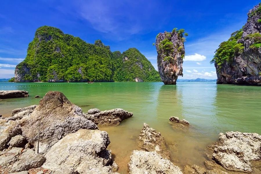 Parmi les îles de la baie, on trouve Koh Tapu, connue sous le nom de James Bond Island en raison de son apparition dans un film de James Bond, et Koh Phanak, que l’on visite pour ses grottes et ses lagons que l’on peut explorer en annexe ou en kayak. Les eaux de cette zone sont parsemées de récifs coralliens que l’on peut explorer en faisant de la plongée avec masque et tuba ou de la plongée sous-marine.