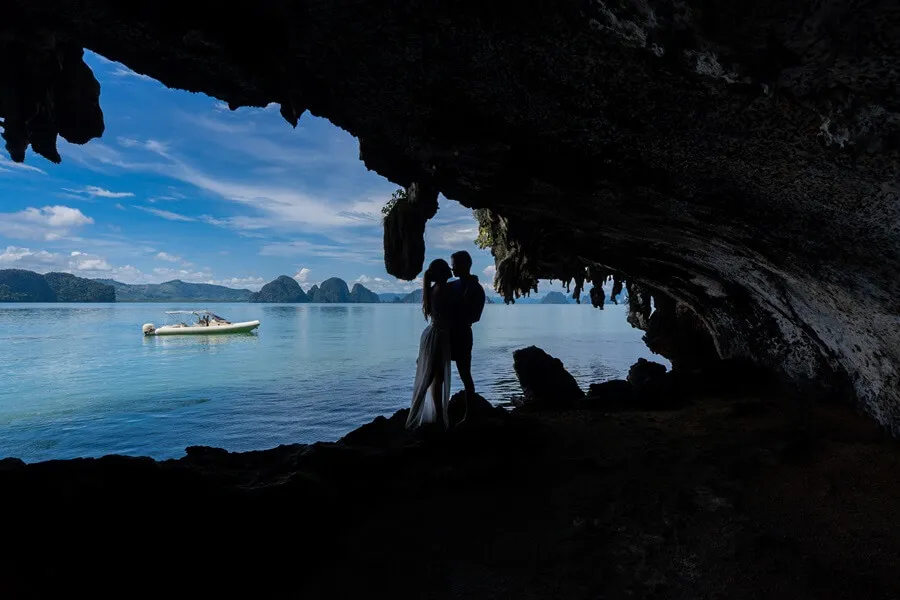 S’étendant sur quelque 400 km², la baie de Phang Nga se situe entre Phuket et le sud de la Thaïlande continentale. Également connue sous le nom de parc national d’Ao Phang Nga, elle se caractérise par des falaises et des formations rocheuses karstiques vertigineuses qui s’élèvent du littoral et des îles, ainsi que par des forêts de mangroves.