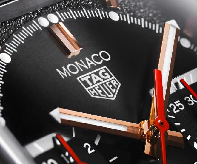 Une affirmation spécifique qui mérite d’être examinée est qu’il s’agit seulement de la deuxième Monaco dont le boîtier est en titane, après l’édition limitée Titan de l’année dernière. Il s’ensuit que c’est la première fois que la Monaco est habillée de titane traité DLC. Cette édition spéciale, que nous aimons appeler Dark Sun, est uniquement disponible dans les boutiques TAG Heuer et en ligne.