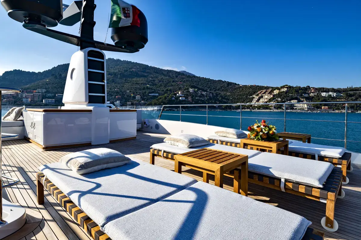 Livré en 2022, le SX88 offre un équipage professionnel de trois personnes avec un capitaine, un matelot et un chef/hôtesse. Une annexe à jet rapide, un jet ski, des skis nautiques, deux planches à pagaie, et plus encore offrent aux invités la possibilité de s’éclabousser dans les vagues italiennes.