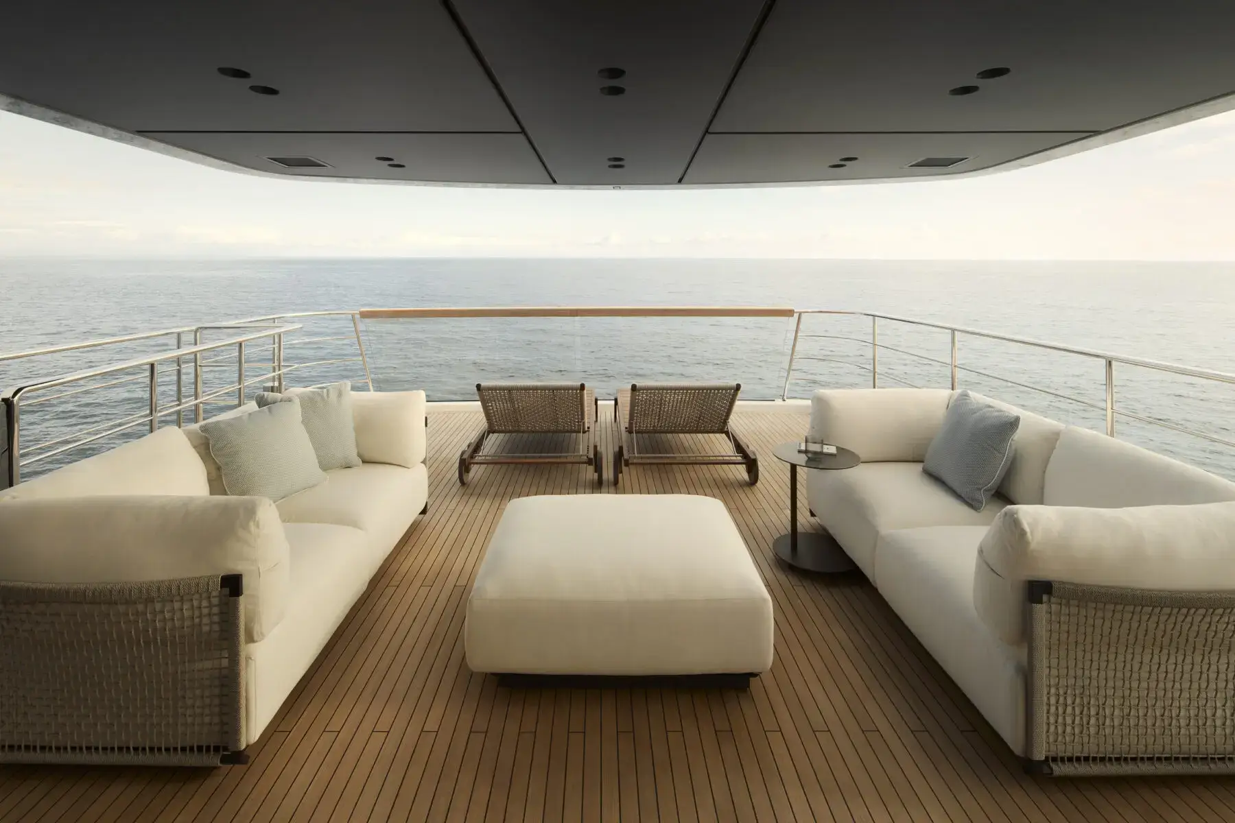 A bord du Sanlorenzo SD90 Akira, un tout nouveau yacht à louer, dont la proue, le pont principal et les cabines du propriétaire ont été redessinés pour offrir un niveau de confort supplémentaire sur l’eau.