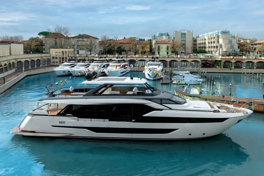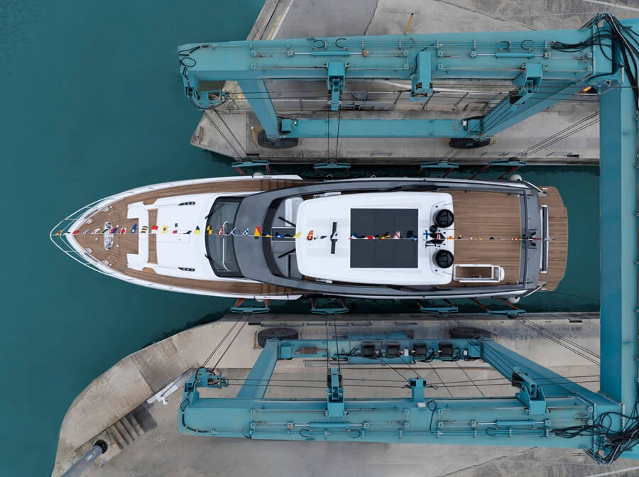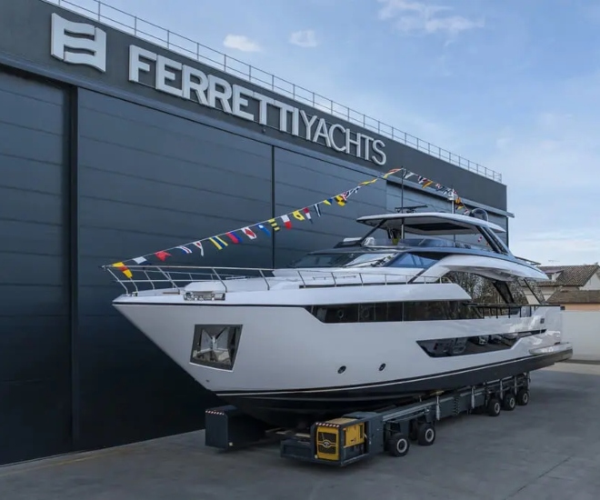 Le premier Ferretti Yachts 940 a été lancé à Cattolica, sur la côte est de l’Italie, avec l’unité vendue sur le marché national et destinée à rester dans le pays. Le site de Cattolica du groupe Ferretti est dédié aux plus grands modèles de Ferretti Yachts et est situé à environ 100 mètres à l’intérieur des terres, ce qui nécessite que chaque bateau achevé soit transporté dans les rues jusqu’à un travel-lift dans la marina locale.