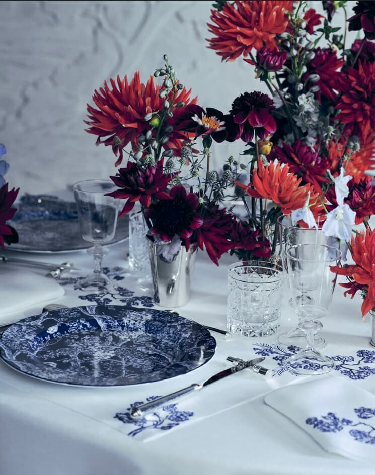 Maria Grazia Chiuri est une femme qui regarde vers l’avenir mais s’inspire du passé. Sa collection de couverts et d’ustensiles de service « Toile de Jouy » met en valeur le savoir-faire français et le style Dior à travers des représentations du bestiaire sauvage. La collection propose des assiettes à dîner, à dessert, à pain, sans oublier le plateau, la soupière, le saladier, les services à thé et à café, imprégnés de dessins d’un bleu intense. Cette teinte rend hommage aux couleurs phares de Christian Dior.