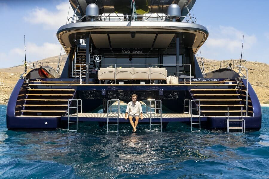 En attendant la livraison de son bateau, prévue pour 2023, il a pu profiter d’une tranche de yachting durable en Grèce, en essayant un catamaran à voile Sunreef Eco offrant les mêmes performances et le même fonctionnement silencieux que son futur yacht à moteur.