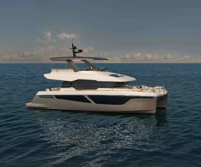 Sous la direction conjointe de Romain Motteau, Directeur Général Adjoint de Fountaine Pajot, et d’Yvan Eymieu, Directeur de la marque en Asie, désormais Directeur Général de Veya, la société a présenté son premier modèle : le Veya 53, un catamaran à moteur conçu pour allier une simplicité raffinée à une innovation ciblée.