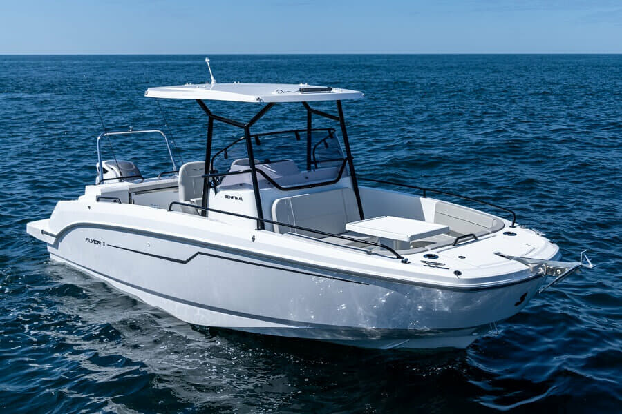 Michael Guinet, responsable des bateaux à moteur hors-bord chez Beneteau, a déclaré : Avec le Flyer 8, nous sommes heureux de dévoiler l’esprit qui filtre désormais dans la gamme des dayboats Beneteau. Le Flyer 8, déjà apprécié pour son confort, va désormais plus loin, qu’il s’agisse de l’espace à bord, de la praticité ou de la protection des personnes à bord.