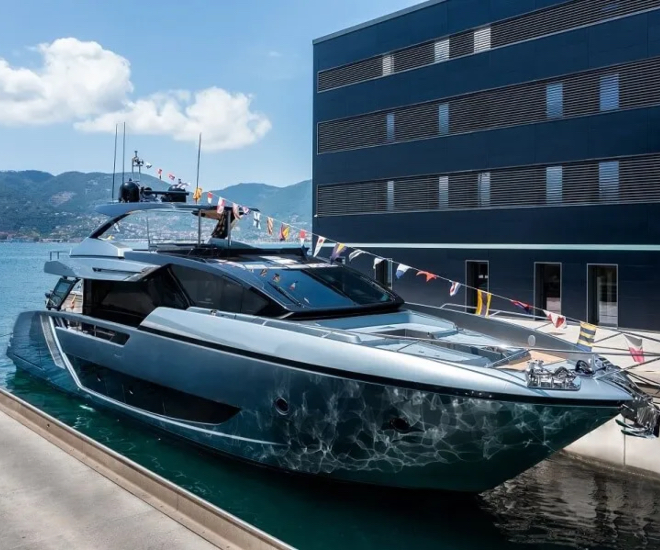 Sur la côte ouest de l’Italie, Riva a récemment mis à l’eau le premier Diva 82′ à son chantier naval de La Spezia, qui dispose d’un flybridge de 40m2, que le constructeur a décrit comme l’un des plus grands pour cette taille de yacht et de la même taille que le pont supérieur du GTX116.