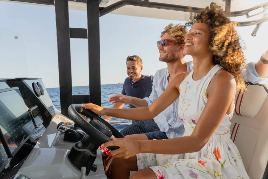 Il est facile de suivre le bateau et tout ce qui se passe autour, car toutes les informations de navigation sont affichées sur des écrans plats Garmin. Ajoutez à cela un joystick qui permet des manœuvres simples et intuitives, et vous obtenez une combinaison gagnante de puissance et de facilité d’utilisation.