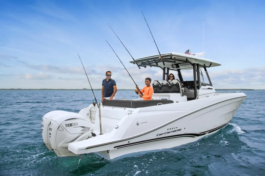 Maintenant sur l’eau et prêt à s’amuser, le Jeanneau Cap Camarat 10.5 CC est le plus grand modèle Centre Console de la gamme de hors-bord Cap Camarat du constructeur français et un frère sportif du 10.5 Walk Around.