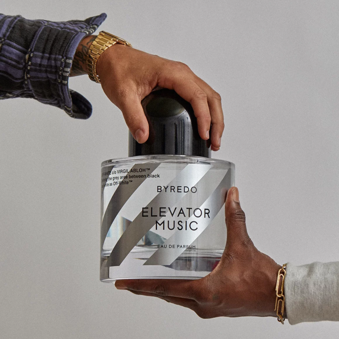 En ce qui concerne le design du flacon de parfum, Virgil Abloh a collaboré avec Ben Gorham de Byredo pour créer la collection capsule Elevator Music qui contient un parfum, une brume capillaire et une crème pour les mains.