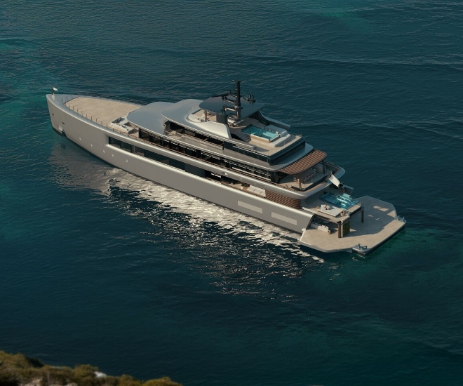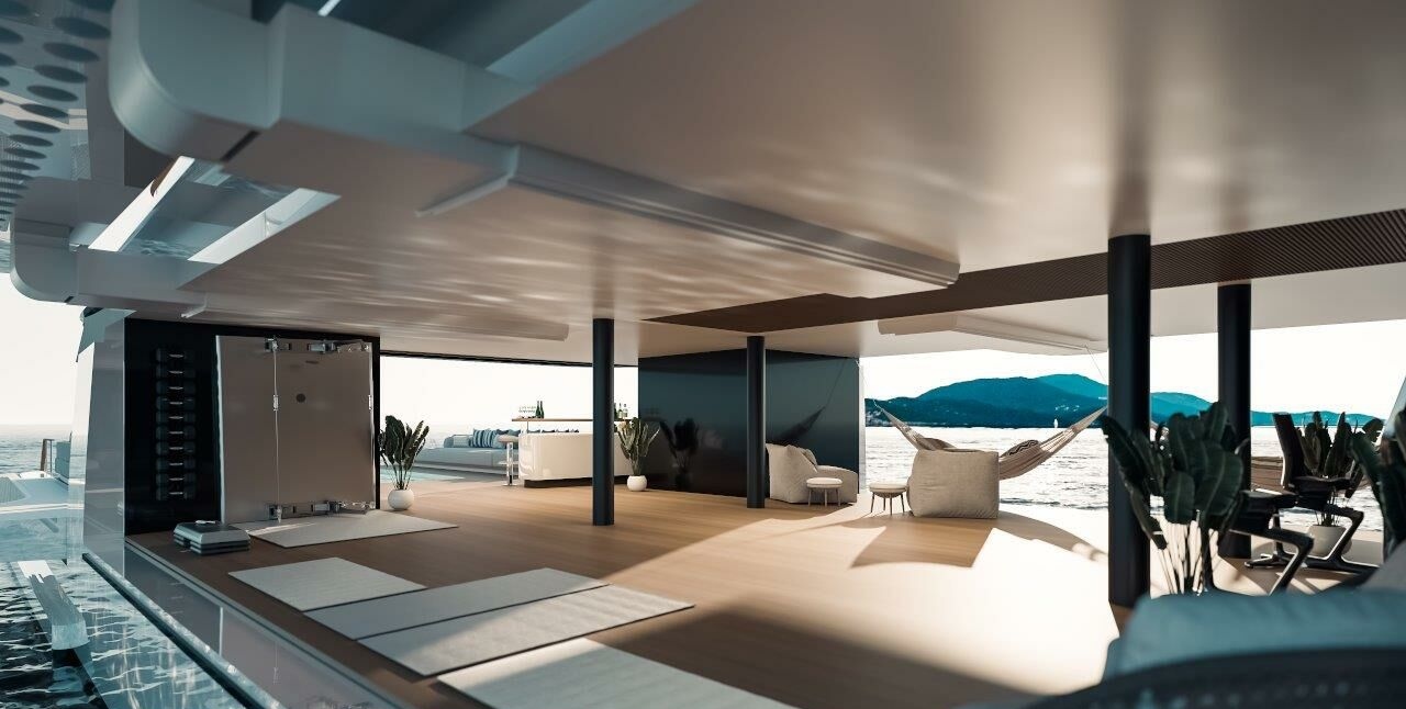Conçu pour varier les expériences lors de longues croisières, le B.Yond 57M se décline en trois configurations de poupe : la version Beach avec un généreux espace extérieur et une piscine, la version Air avec un héliport touch-and-go et la possibilité de transformer cet espace en véranda, et la version Water conçue pour ranger le matériel d’exploration marine.