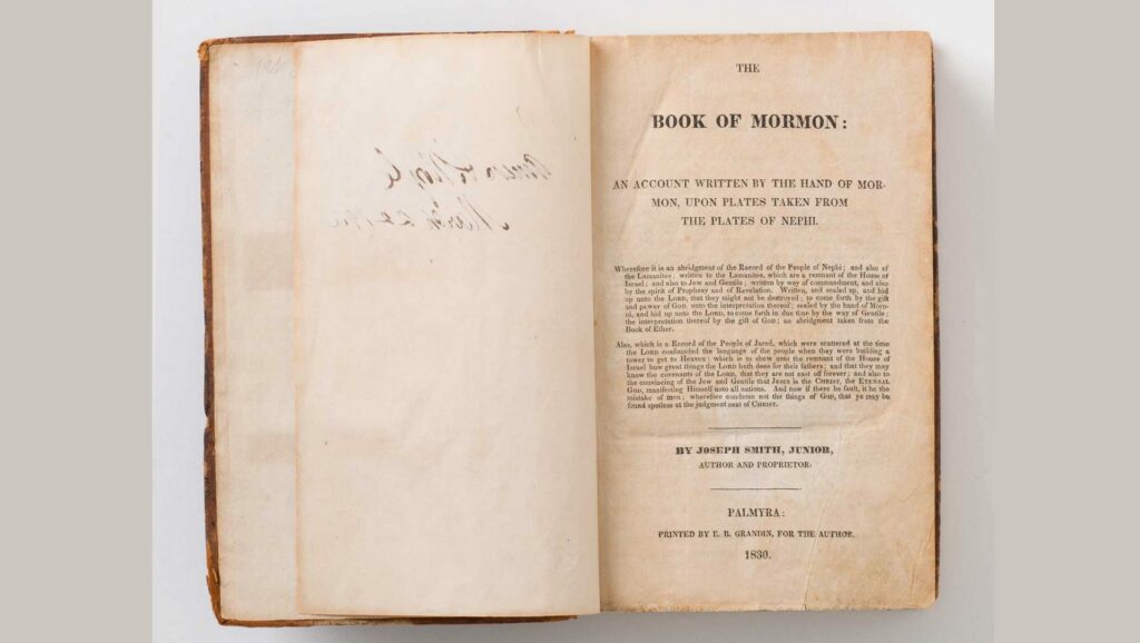 Il serait issu de la traduction par Smith d’un texte inscrit sur des tablettes d’or découvertes près de sa maison de Palmyra, dans l’État de New York, dans les années 1820.