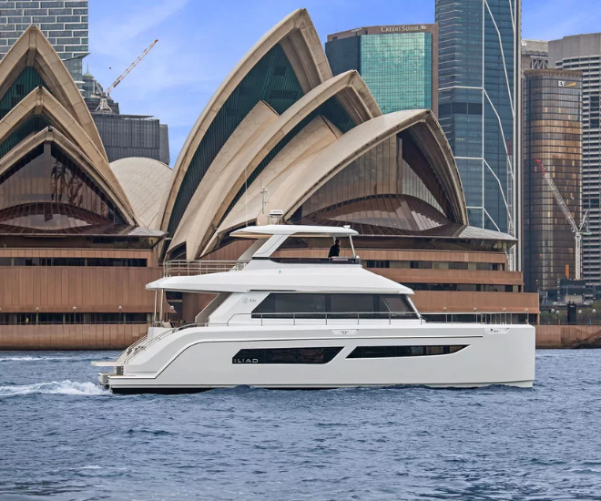 L’ILIAD 53F lancé au Salon nautique international de Sydney 2023 est le modèle à flybridge de la berline ILIAD 53S dévoilée au Salon nautique international de Sanctuary Cove. Les deux modèles ont occupé les équipes de vente car les acheteurs ont été séduits par leur autonomie exceptionnelle, leur efficacité énergétique et l’espace de vie qu’offrent ces nouveaux bateaux.