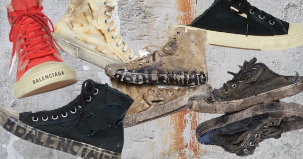 En effet, la nouvelle paire de chaussures crée par la marque est plutôt osée si ce n’est ridicule. Les prix varient de 395 euros pour les mules, 495 pour les baskets montantes jusqu’à 1450 euros pour les plus chères d’entre elles. Le thème principal de la collection est le destroy et chaque produit est complètement détruit, usé avec des traces noires.