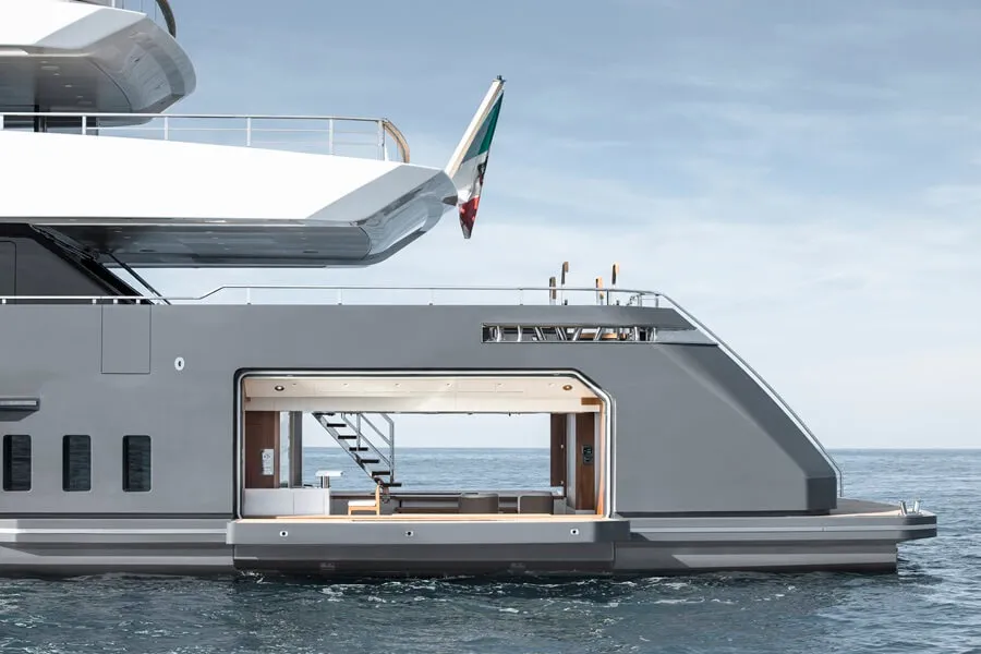 Zuccon a cherché à créer un style extérieur intemporel qui serait reconnaissable comme faisant partie de la famille Sanlorenzo tout en se distinguant de la flotte actuelle. Le designer a atteint cet objectif grâce à des éléments de design spécifiques, tels que les mains courantes caractéristiques sur le pont principal et le pont supérieur.