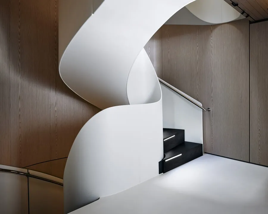Lissoni & Partners a créé VirtuositéL’intérieur à la fois minimal et chic de Sanlorenzo comprend un escalier qui fait sensation. Le designer Piero Lissoni, directeur artistique de Sanlorenzo, est connu pour ses escaliers architecturaux tout à fait uniques, et celui que l’on trouve sur le site de la Virtuosité ne fait pas exception. Étude des formes organiques, cet escalier aux lignes courbes est certainement le plus beau de tous les escaliers de l’Europe. pièce de résistance qu’il se proposait d’être.