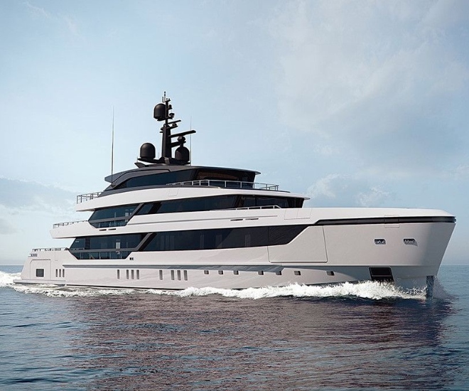 La création de la nouvelle gamme 57Steel pour Sanlorenzo a été un exercice d’équilibre entre le volume, la longueur et les proportions. Le constructeur italien cherchait à étendre sa gamme de superyachts à coque en acier avec une offre qui offrait un volume généreux dépassant les 1000GT sans atteindre une longueur excessive, et sans avoir l’air trop trapu ou trop lourd.