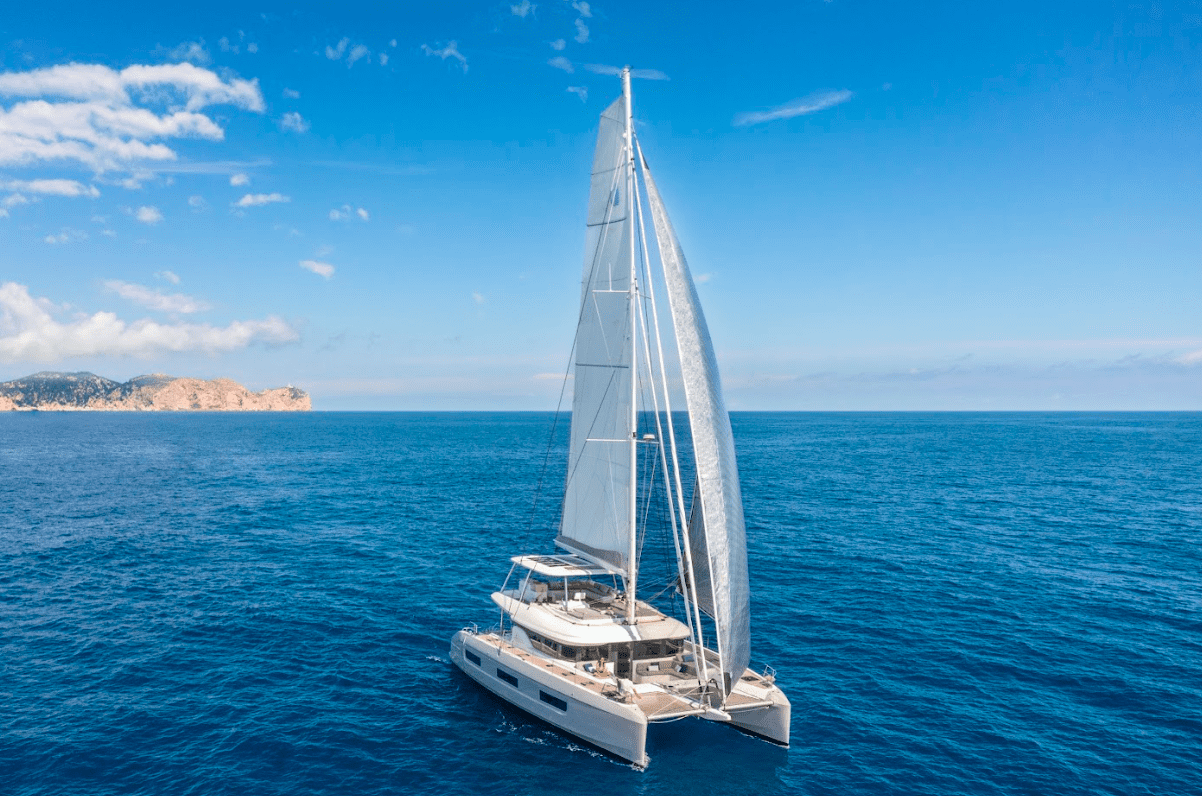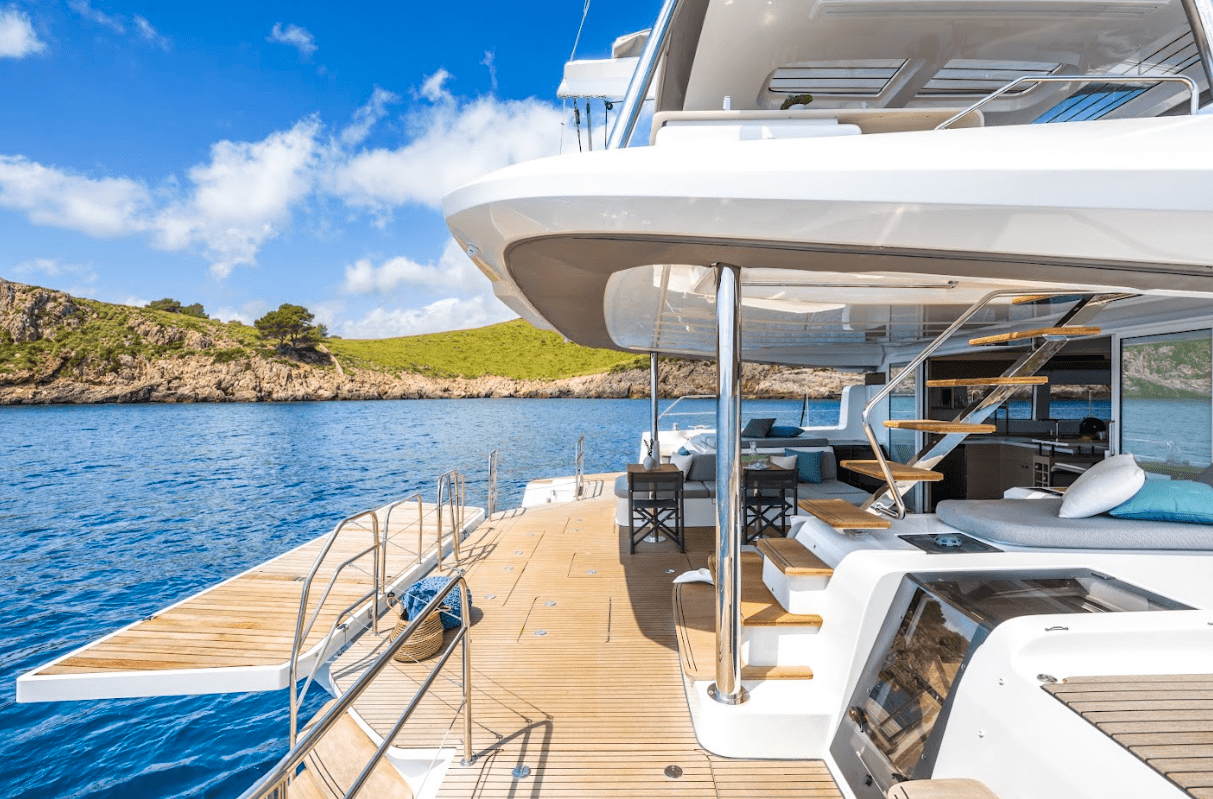 C’est le plus grand des deux catamarans, devenu le fleuron de la gamme « standard », que nous avons eu la chance de découvrir dans les eaux cristallines de l’extrémité nord de Minorque, en Espagne.