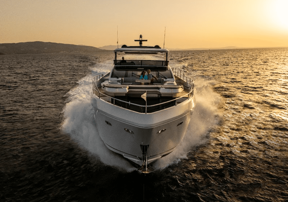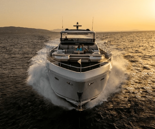 Le Pearl 82 ne se contente pas d’être beau, il offre également des performances impressionnantes sur l’eau. Les propriétaires peuvent choisir entre trois options de propulsion, toutes dotées de deux moteurs MAN V12, avec des puissances allant de 1 650 ch à 2 000 ch. Ces moteurs permettent au yacht d’atteindre des vitesses de pointe comprises entre 28 et 33 nœuds, selon la configuration, et la conception avancée de la coque garantit une croisière fluide et efficace.