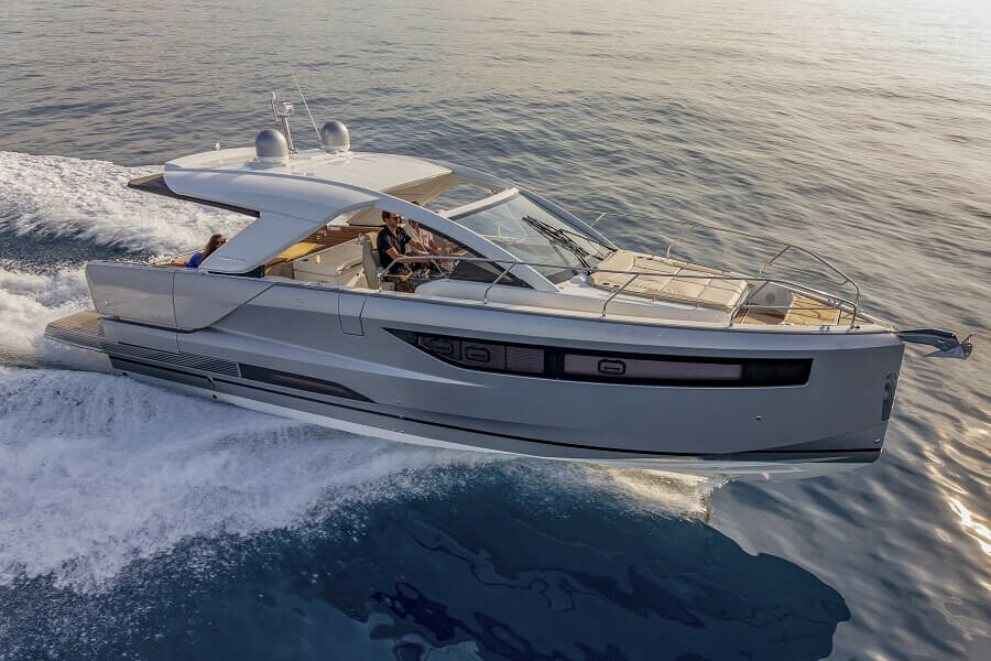 Avec plus de 250 000 bateaux vendus dans le monde, Jeanneau dispose d’une base de données de clients dont la plupart des autres constructeurs ne peuvent que rêver. Faisant partie de la collection de marques de yachts du Groupe Beneteau, le chantier naval français ne crée pas de nouvelles séries sur un coup de tête. Sa gamme de hors-bord ouverts Cap Camarat a fêté ses 40 ans l’année dernière.