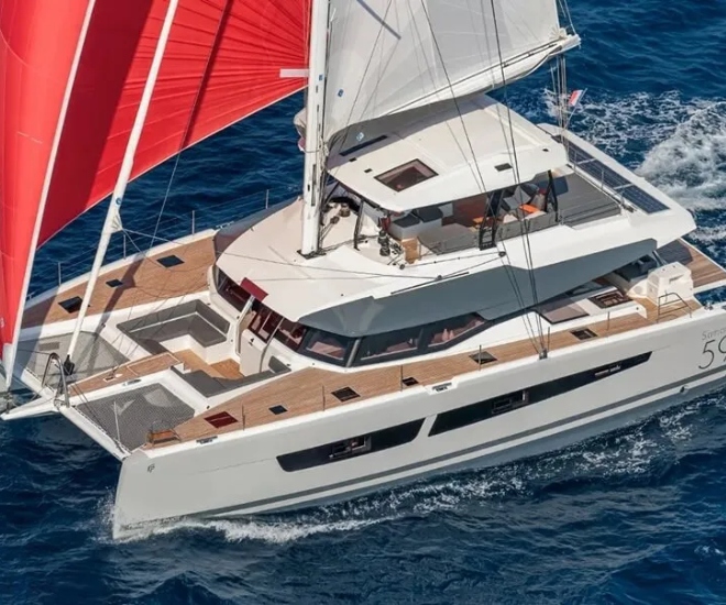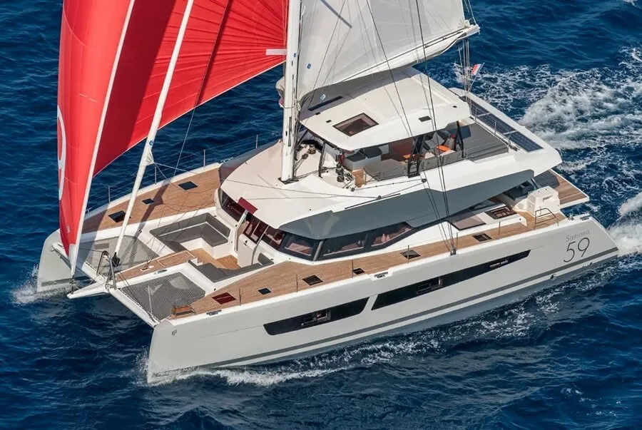 La première à Hong Kong du catamaran à voile Samana 59 de Fountaine Pajot est le point fort du salon. D’une longueur totale de 18,78 m et d’une largeur de 9,46 m, le Samana 59 est le troisième plus grand catamaran à voile de Fountaine Pajot, derrière l’Alegria 67 et le Thira 80.