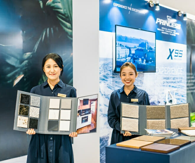Le stand proposait des réductions sur les programmes de location de yachts à Phuket et comprenait des informations sur Princess, ses programmes de conservation marine en Asie du Sud-Est et le rendez-vous annuel Boat Lagoon Yachting Rendezvous, qui permet aux propriétaires de Princess de faire des croisières ensemble en Asie du Sud-Est.