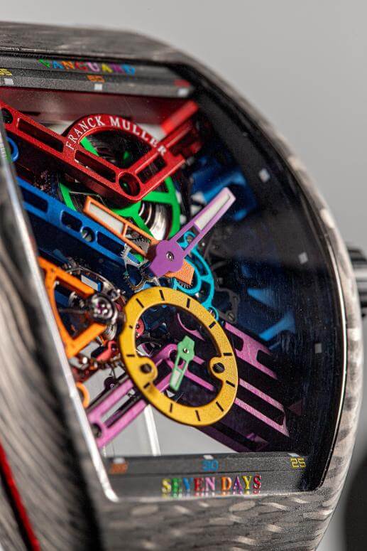 Pour conclure, la Vanguard Skeleton Color Dreams est la dernière née d’une collection inextricablement liée à Franck Muller. Les premières montres Color Dreams sont nées des passions de la marque, enracinées dans les obsessions du fondateur, qui se sont entrechoquées dans un élan de créativité. La montre Color Dreams était un canevas pour un affichage arc-en-ciel accentué par des marqueurs d’heures iconiques surdimensionnés, et a donné lieu à diverses exécutions créatives. Il s’agissait toujours de célébrer le temps, et la Vanguard Skeleton Color Dreams est peut-être la plus pure expression horlogère de cet esprit.