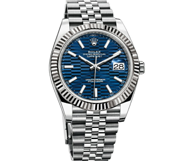 Oyster Perpetual Datejust 41 en Oystersteel et or blanc 18 ct avec un cadran à motif cannelé bleu vif et un bracelet Jubilee.t