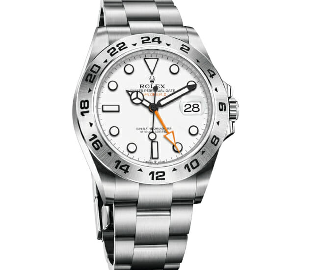 Oyster Perpetual Explorer II en Oystersteel avec un cadran blanc et un bracelet Oyster