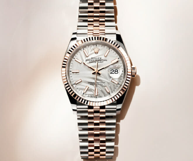 L’Oyster Perpetual Datejust 36 est un compagnon de poignet idéal qui convient à toutes les occasions, des réunions matinales aux dîners de gala. Elle est conçue pour apporter de la polyvalence à son porteur. Les motifs de palmiers argentés évoquent une oasis de verdure – un doux rappel de profiter de chaque moment précieux de la vie.