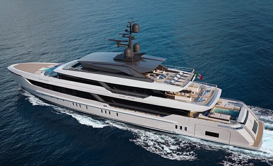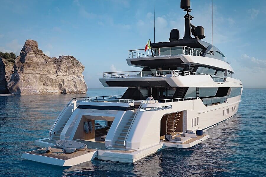 Bernardo Zuccon du studio Zuccon International Project, qui a conçu les lignes extérieures, a déclaré : » L’objectif était de créer un bateau d’environ 1 050GT avec des contenus fonctionnels et de style de vie que l’on trouve normalement sur des bateaux de plus grande taille. Le défi consistait à trouver le bon équilibre entre les volumes et les proportions du bateau.