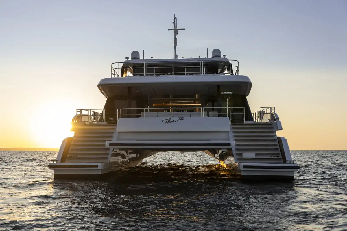Propulsé par deux moteurs de 1 300 ch, le 100 Sunreef Power offre des performances fiables et une grande autonomie de croisière. Le design catamaran du yacht assure des mouvements fluides en mer, améliorant le confort pendant les longs voyages.