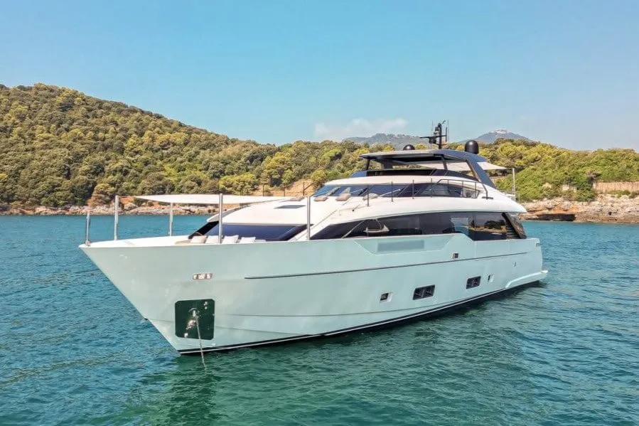 Le superyacht construit en Italie dispose d’un salon au design large sur le côté bâbord, tandis que les quatre cabines en-suite comprennent une suite propriétaire sur le pont principal avec un accès direct au salon du pont avant, qui fait office d’espace privé pour le propriétaire. Doté de deux moteurs diesel MAN de 2 000 ch, le yacht a une vitesse maximale de 29 nœuds, une vitesse de croisière de 25 nœuds et un rayon d’action de 1 100 km à 10 nœuds.