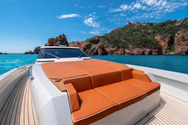 Parmi les espaces de loisirs, on trouve un garage pour l’annexe avec un panneau arrière qui peut être transformé en plateforme de baignade, et des pavois rabattables qui augmentent le beach club et sont facilement accessibles depuis les cabines VIP.